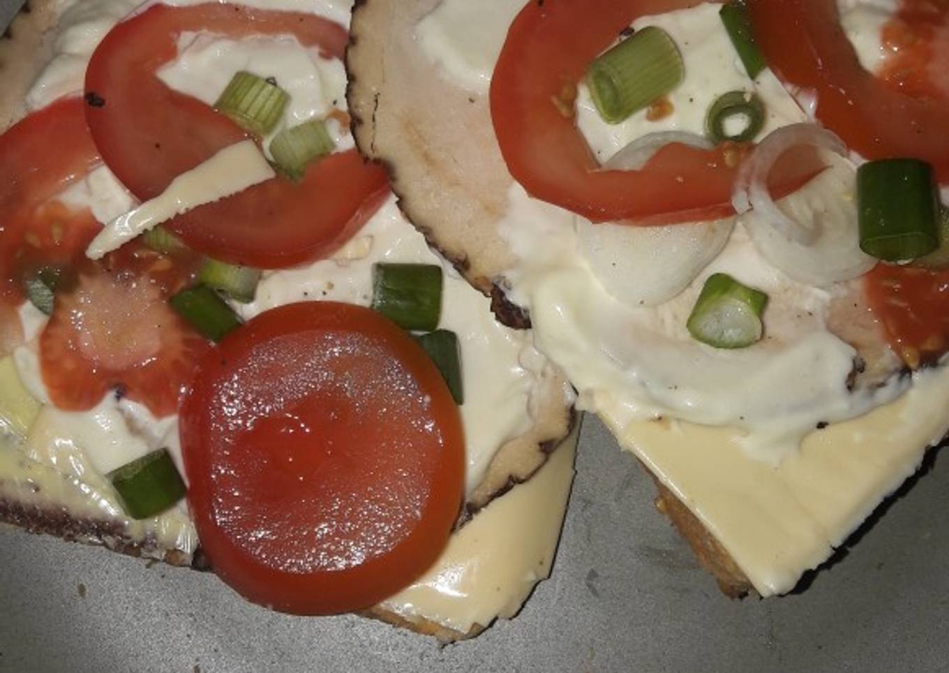 - Butter the bread top with chicken cheese tomato and spring onion aka scallions and mayo season to taste enjoy