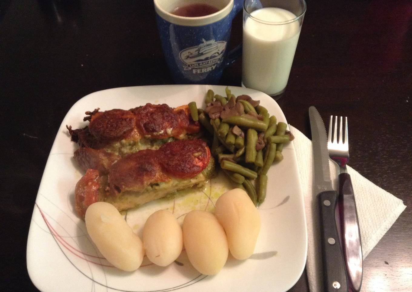 - Cove the to p of each piece of chicken with pesto sauce